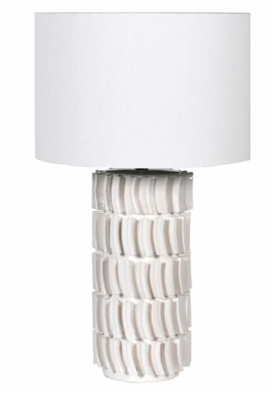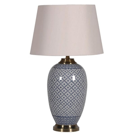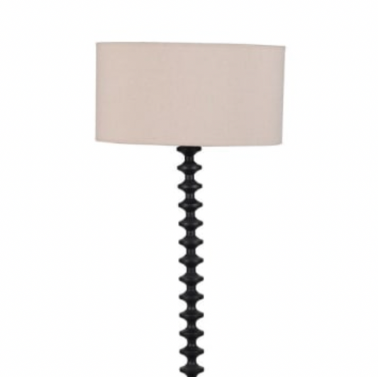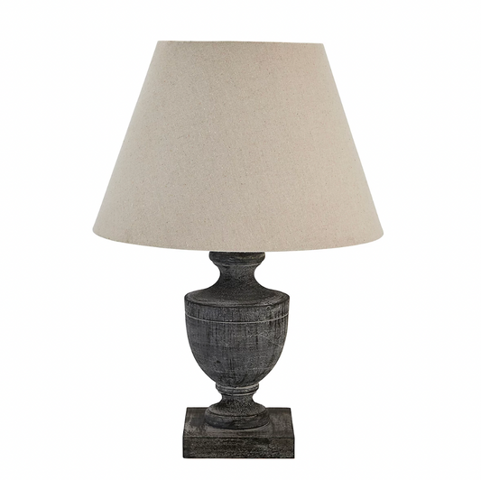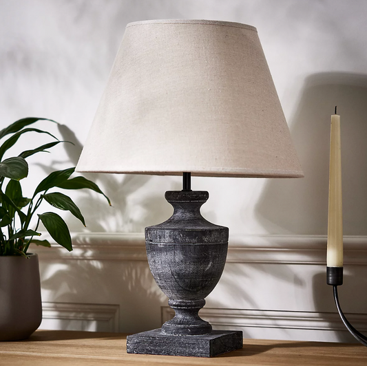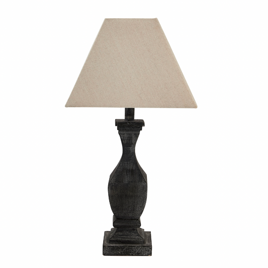 Shaped Smoked Glass Table Lamp with Linen Shade